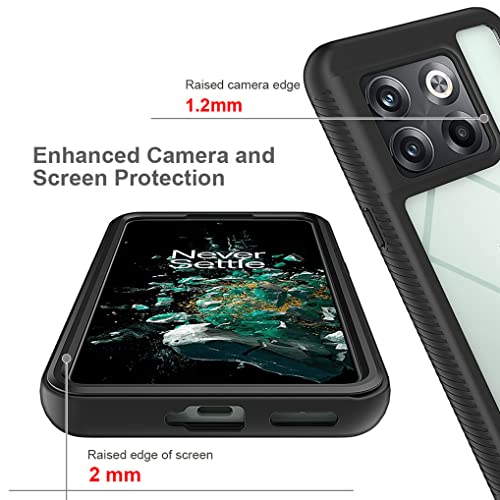 SEAHAI Trasparente Cover per OnePlus 10T 5G, Rugged Custodia Full Body Antiurto Rigida PC Soft TPU Sottile Bumper Silicone Protettiva Case - Nero