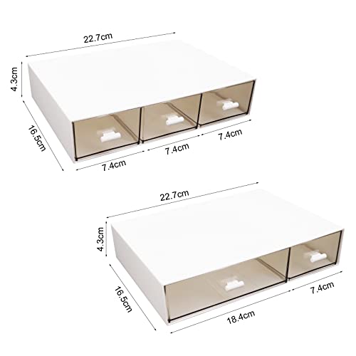 Seahelms Organizer per cassetti, trasparente, organizer da scrivania, impilabile, in plastica, per ufficio, camera da letto, cucina, bagno, armadio, set di 2 (bianco)