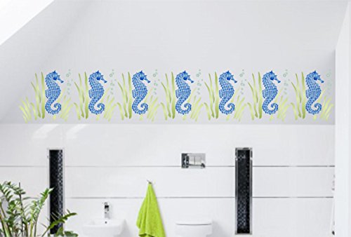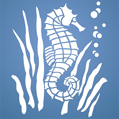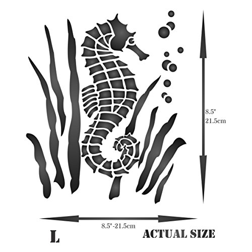 Seahorse Stencil - Stencil riutilizzabile, con motivo ispirato al mare/oceano/barriera corallina/scogliere/corallo, modello per stencil da parete - 21.5 x 21.5cm - L