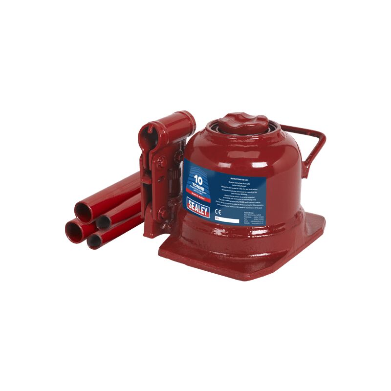 Cric idraulico telescopico a bottiglia profilo basso capacità 10T dotato di valvola di sovraccarico. Base e serbatoio saldati per una maggiore resistenza e una ridotta possibilità di perdite Il gruppo pompa filettato consente un facile smontaggio e manutenzione. Fornito con impugnatura in 4 pezzi. SPECIFICHE TECNICHE: Capacità: 10 tonnellate Estensione martinetto idraulico: 95 millimetri Altezza massima: 223 millimetri Altezza minima: 128 millimetri Peso netto: 7.70Kg