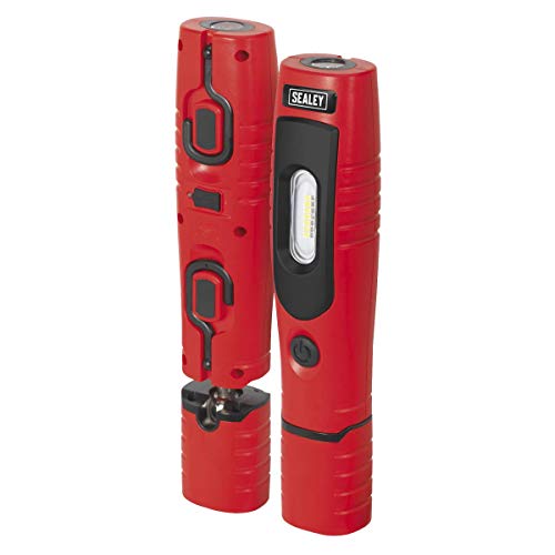 Sealey LED3602R - Lampada di ispezione ricaricabile agli ioni di litio a 360°, 7 SMD, 3W, colore: Rosso