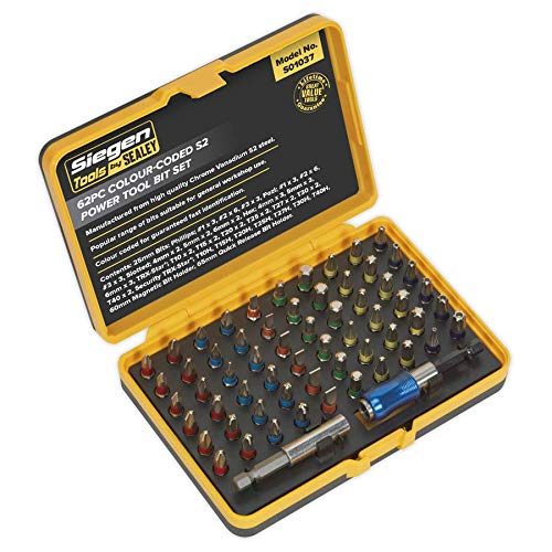 Sealey S01037 color-coded S2 Power Tool bit set (62-piece)