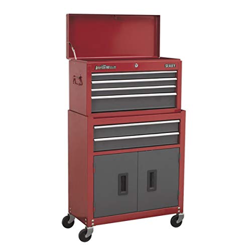 Sealey Topchest/Rollcab Combinazione con 6 cassetti con Guide con Cuscinetti a Sfera, Colore: Rosso/Grigio