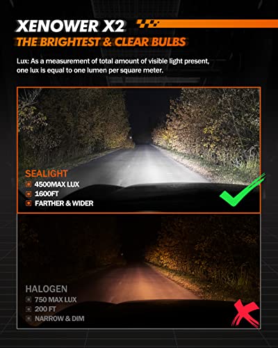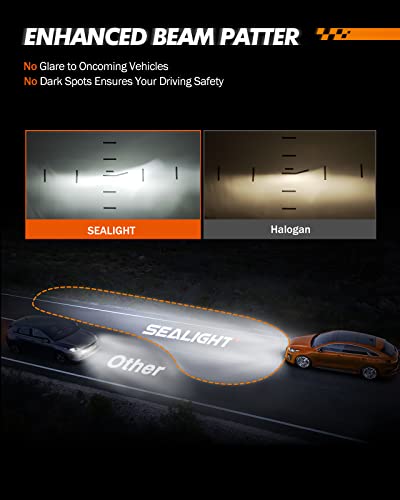 Visibilità ultra lunga 1600 piedi: rispetto all'alogeno 3200K, visibilità scarsa di 100 piedi, le lampadine LED SEALIGHT X2 9005 possiedono una luce bianca fredda da 6000K e una gamma di luce di 1600 piedi, che aiuta a vedere chiaramente i segni e gli ostacoli in anticipo