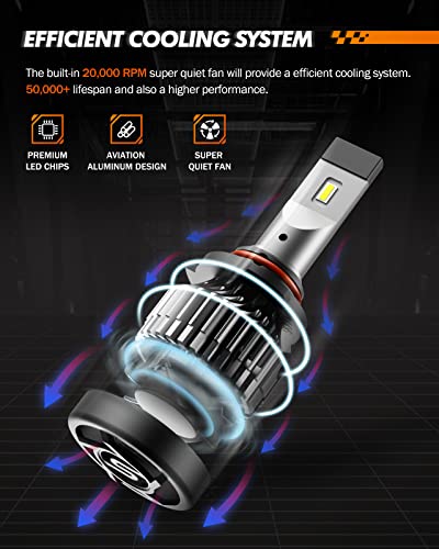 Durata della vita di oltre 50.000 ore: .Con una durata della vita estesa di oltre 50.000 ore, le lampadine X2 9005 hanno un'illuminazione più duratura rispetto alle lampadine alogene. Inoltre, con la ventola interna del tubo da 20000 giri / min aumenterà l'efficienza del raffreddamento garantendo una maggiore durata