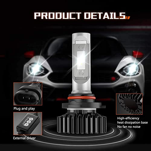 LED 400% più luminoso: 9005 lampadine a LED forniscono 14000LM per coppia, che è 4 volte più luminoso delle lampadine alogene. Il bianco allo xeno 6000K ti aiuta a vedere più chiaramente durante la guida notturna.