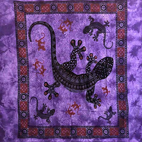 Seamar Telo Arredo Copritutto Grande Geko 210x230 cm 100% Cotone Copri divano Gran foulard con Frange Batik (Viola)