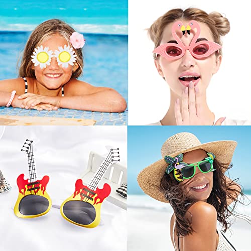 [Occhiali Hawaiani per Feste]: Riceverete 6 diversi stili di hawaiian tropicale festa occhiali, tra cui Squalo, anguria, crisantemo bianco, gelato, fenicottero, ananas, questi occhiali da sole divertenti possono facilmente abbinarsi ai tuoi abiti eleganti e mostrare la tua personalità.