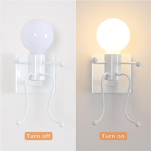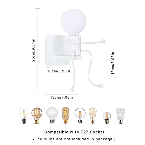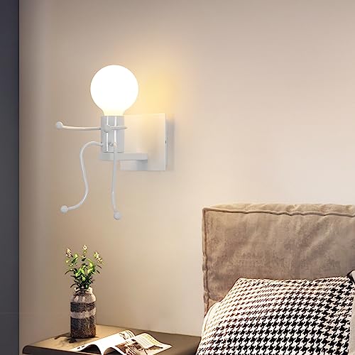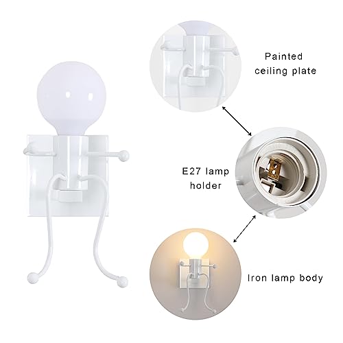 Seamoon Humanoid Creativo Lampada da Parete Interno,Applique da parete nero stile contemporaneo e retrò,Lampada a Muro Applique Candelabro E27 per Camera da Letto, Scale,Stanza dei Bambini (Bianco)