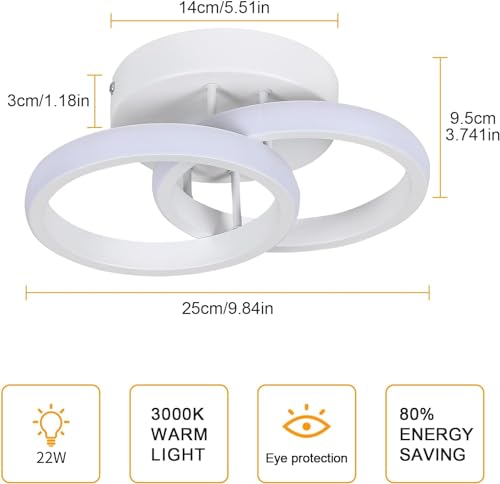 【Atmosfera confortevole】 La plafoniera a LED in alluminio con design a croce a doppio cerchio e potenza di uscita di 22W 1950lm ad alta luminosità offre una nuova esperienza all'illuminazione interna. La fonte di luce calda da 220 V viene utilizzata per ammorbidire la luce e creare un'atmosfera di vita confortevole.