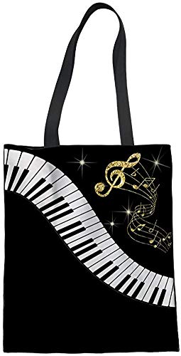 SEANATIVE - Borsa a tracolla per la spesa, con stampa di note musicali, in tela, motivo pianoforte, colore: nero
