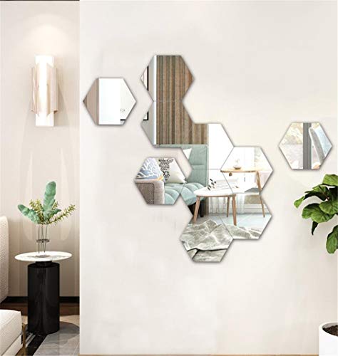 SeaNpem Adesivi da parete a specchio, 12 pezzi fai da te quadrati adesivi da parete fai da te, ideali per casa, soggiorno, camera da letto, divano, TV, ufficio, ristorante, corridoio murale (esagono)