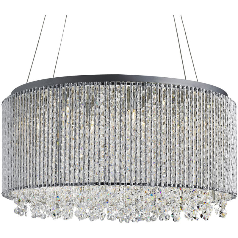 Collezione Elisa I LAMPADA GLAMOUR L'apparecchio da soffitto Elise II a 8 luci è una miscela di glamour vintage e design audace. La struttura con finitura cromata lucida è ornata con aste in alluminio intrecciato e gocce di cristallo trasparente che riflettono magnificamente le otto luci per un'eleganza elegante che costituirà un magnifico elemento centrale in qualsiasi spazio abitativo o corridoio. La sospensione può essere regolata per diverse altezze del soffitto.