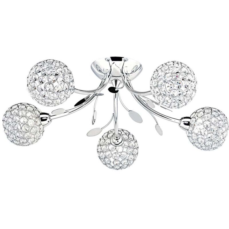 Searchlight Bellis - Plafoniera a 5 luci semi-filo multibraccio in cromo e vetro con motivo floreale, G9 | Finitura: Chrome | Classificazione IP: IP20 | Altezza (cm): 17 | Diametro (cm): 54 | Numero di luci: 5 | Tipo di lampada: G9 | Potenza (max): 33 | Peso (kg): 1,8 | Classe: 1 (a terra) | Lampadina inclusa: Sì | Efficienza energetica: C