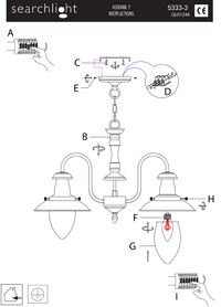 Searchlight - Lampada da soffitto, in vetro, ottone anticato, M