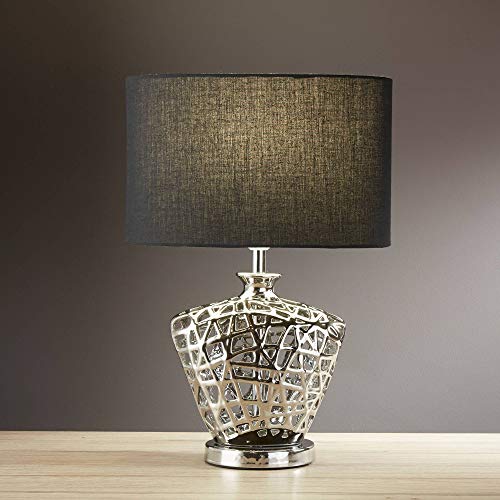 Searchlight Network - Lampada da tavolo a 1 luce cromata con paralume nero, attacco E27