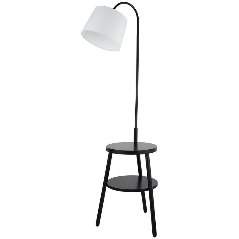 Searchlight Ridge Lampada da Terra Shelf Nero, Legno, Tessuto Bianco | Finitura: bianco, nero | Materiale: acciaio dolce e legno | Grado di protezione IP: IP20 | Altezza: 166 cm | Lunghezza: 50 cm | Larghezza: 55 cm | Tipo di lampada: E27 | N. di lampade: 1 | Lampadina inclusa: no | Dimmerabile: no | Peso: 6,1 kg | Potenza (max): 10 W | Commutato: interruttore a pedale on/off in linea nero