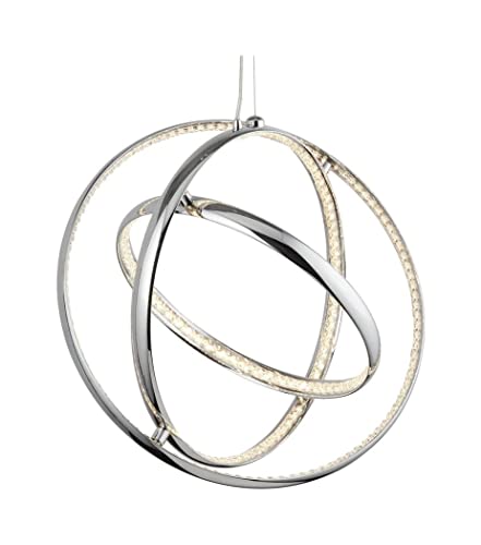 Searchlight Rings - Sospensione a soffitto a LED integrata cromata con cristalli di vetro