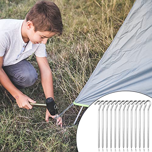 Seasboes 12 Pezzi Picchetti da Tenda, Metallo Picchetti Giardino, Picchetti Campeggio per Terra Rigida Chiodi per picchetti da Giardino, Attrezzatura da Campeggio per per Escursionismo (18 CM)