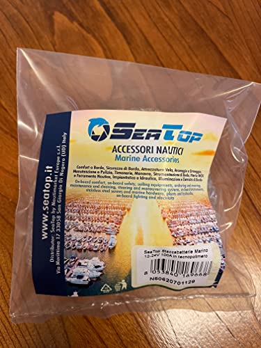 Staccabatterie Marino 12-24V 100A SeaTop in tecnopolimero nero con fissaggio su flangia, completo di cappuccio impermeabile e due chiavi rimovibili, contatti in rame, ideale per barca, auto, trattore, camion, camper ecc. 75x60mm, perni 8mm