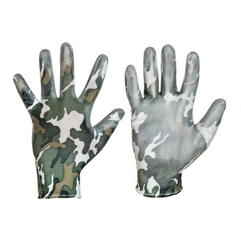 Guanto mimetico in poliestere spalmato sul palmo e nelle dita in poliuretano Taglie: 8/10 Taglia XS bambini 500PMB Certificazione: EN420 - EN388 2131 Settori di utilizzo: CANTIERI E LAVORI EDILI AGRICOLTURA E GIARDINAGGIO