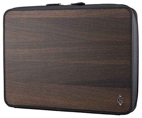 Sebastian Sturm Cassa del Computer Portatile Leo | Realizzata in Vero Legno di Rovere Affumicato o Amazaque e Pelle Bovina | Marrone Nero | By 15", Nero (Rovere Affumicato)