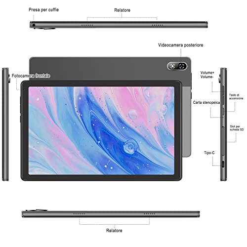 SEBBE Tablet 10.36 Pollici Android 11 Tablet Octa-Core Tablet, 4GB RAM+64 GB ROM (128 GB Espandibili), 1332 * 800 HD Pixels/5MP+8MP/8000mAh/Bluetooth/WiFi, Tablet con Penna+Custodia+Cuffie,Grigio