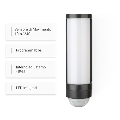 SEBSON Lampada per esterni con rilevatore di movimento e LED integrati e non sostituibili, Classe di protezione IP65.