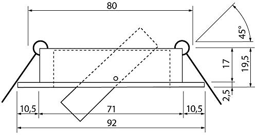 Coperchio: 92x92mm, Altezza: 19,5mm, Foro di montaggio: 80mm (min. 78mm, max. 85mm), Campo di rotazione: 90° o +/-45°.