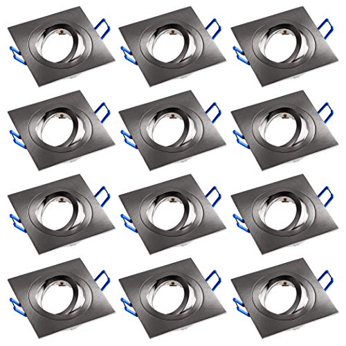 SEBSON 12x Faretto ad incasso quadrato incl. portalampada GU10 - Foro di montaggio ø80mm Dimensioni 92x92x19,5mm, alluminio, LED/Alogena
