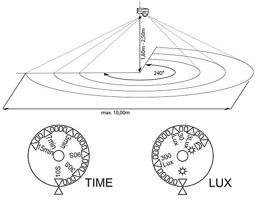 Il rilevatore di movimento a superficie può essere regolato anche in base alla luminosità dell'ambiente (tra 3 e 2.000 LUX).