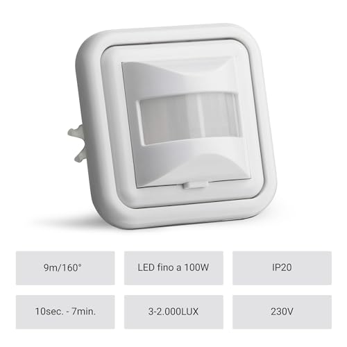 SEBSON Rilevatore di Movimento da Incasso Parete, adatto a LED, programmabile, Infrarossi Sensore, Portata di rilevamento max. 9m/160°, max. 100W