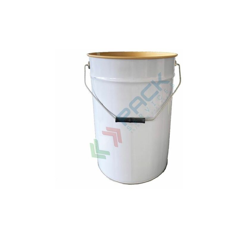 Secchio conico in metallo omologato ONU per materie liquide, capacità 23,4 Litri, Mis. Ø superiore 292 x Ø inferiore 275 x 380 H mm. Latta in metallo ad apertura totale con manico ad arco e con coperchio a cravatta (da acquistare separatamente). Il secchiello in banda stagnata è omologato ADR/ONU (marcatura: ONU 1A2/Y,4/150) ed è ideale per il trasporto di vernici e prodotti edilizi ma anche nel settore industriale. Secchio in latta a sezione conica facilmente impilabile e stoccabile di colore bianco ed interno laccato. Il bidone in metallo con interno laccato è ideale per prodotti all'acqua. Coperchio con cravatta metallica NON incluso.