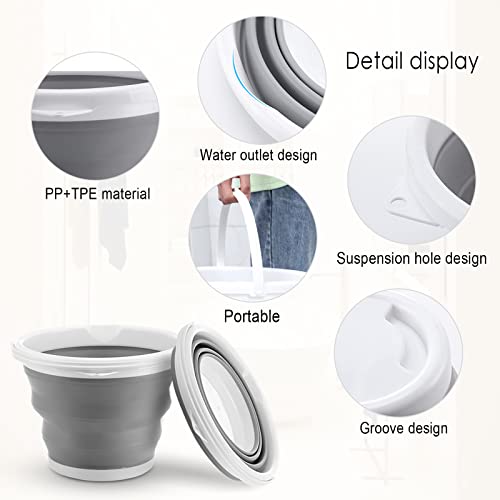 Secchio pieghevole, secchio pieghevole multifunzionale in silicone con comoda maniglia, design pieghevole, facile da trasportare e risparmiare spazio (grigio 5l)