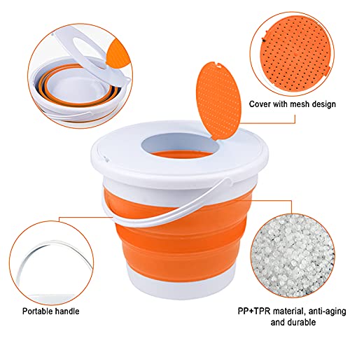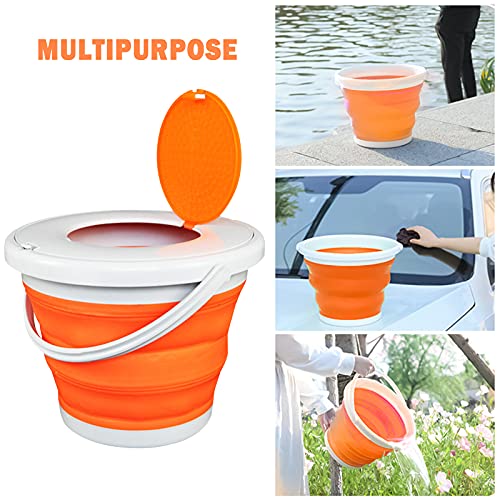 Secchio Pieghevole Portatile,secchio Blu Pieghevole Da Campeggio, Con Coperchio,design Pieghevole,facile Da Trasportare E Riporre,adatto Per Bagno,campeggio All'aperto(10l, Arancione)