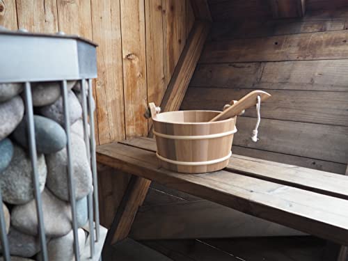 Secchio da 4 litri - Questo accessorio essenziale per sauna contiene 4 litri di acqua, che puoi usare per creare vapore e controllare l'umidità nella tua sauna. Una maniglia in corda completa una bella estetica e consente una facile appendere.