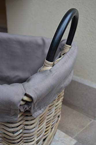 Intreccio a mano in rattan naturale Kubu grigio, molto resistente. Manici in canna di rattan colore nero, resi particolarmente robusti poichè inseriti nell'intreccio.