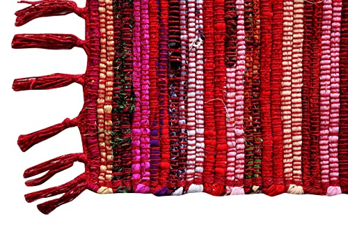 Second Nature Online Red Multi Colour Festival Rag Rug Medium Hand Made Reversible Mat GoodWeave Certified 75 cm x 120 cm