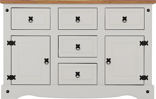 Seconique, Credenza Corona a Due Ante con 5 cassetti - Legno di Pino Grigio/Anticato e Cerato.