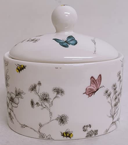 Decorato a mano nel Regno Unito con splendidi fiori segreti da giardino farfalle e api.