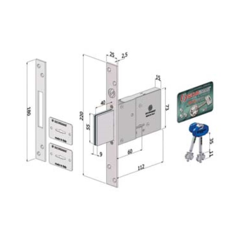 Mm.60 (2001xzb6025a32) scatola frontale contropiastra e copritoppa in acciaio zincato - catenaccio movimentato da chiave - brevetti contro la manipolazione - serratura con chiave doppia mappa securmap11 brevettata a duplicazione protetta - in dotazione: 1 contropiastra cp2001xzb, 2 piastrine 4901xzb, 2 chiavi e 1 security card. Categoria merceologica: Serrature, chiusure di sicurezza e accessori - Sicurezza - Serrature a doppia mappa da infilare