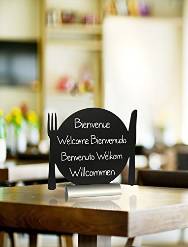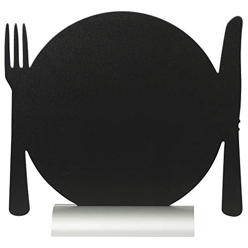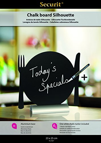 Securit Lavagna da Tavolo-Piatto con Posate-Base in Alluminio-1 Pennarello Bianco Incluso, x2