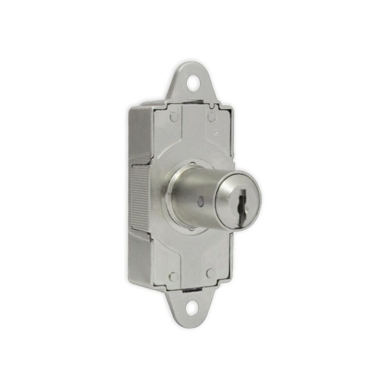 Serratura Kyr ad aste rotanti,da avvitare - Rotazione 90° destro 1 uscita chiave Misure: KYR 20.16.1 Cilindro Ø 16,5 X 21 mm KYR 20.16.2 Cilindro Ø 16,5 X 26 mm KYR 20.16.3 Cilindro Ø 16,5 X 31 mm KYR 20.16.5 Cilindro Ø 16,5 X 36 mm KYR 20.16.6 Cilindro Ø 16,5 X 41 mm Finitura Nichelata