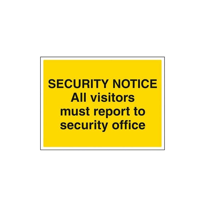 V Safety Security Notice, All Visitors Must Report To Security Office Cartello orizzontale - 400 mm x 300 mm - 1 mm in plastica rigida 400mm x 300mm