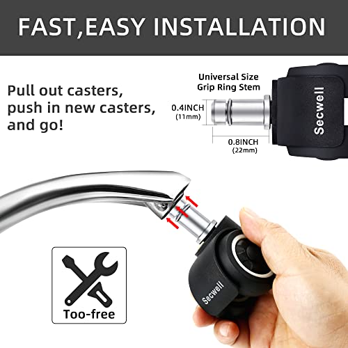 【Dimensioni stelo standard universali】 11 mm x 22 mm , Verificare le dimensioni della ruote per sedia ufficio della sedia prima di ordinare per assicurarsi che si adatti. Può essere ruotato di 360 °.