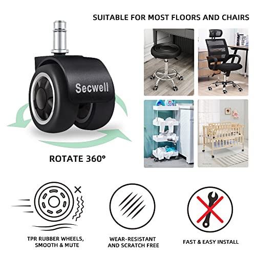 Secwell 5PCS Rotelle Universali per Sedia Ufficio (11x22mm) Ruote Girevoli per Sedie Ruote per Pavimenti Duri Protegge Pavimento