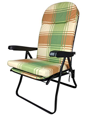 Sedam Srl Poltrona Sdraio Pompei, Telaio in Ferro Imbottito, Comoda, Reclinabile in 6 Posizioni, Pieghevole Pic- Nic Esterno Interno 100% MADE IN ITALY (Verde Marrone T)