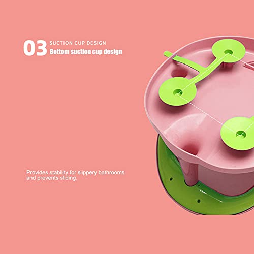 【Ventosa di sicurezza e antiscivolo】 circa 32x32x24cm / 12.60x12.60x9.45inch. Il sedile del bagno del bambino ha una potente ventosa di base per evitare che i sedili di inclinazione, e il bambino possa sedersi sullo sgabello e fare un bagno, alimentare, taglio di capelli, shampoo, ecc.