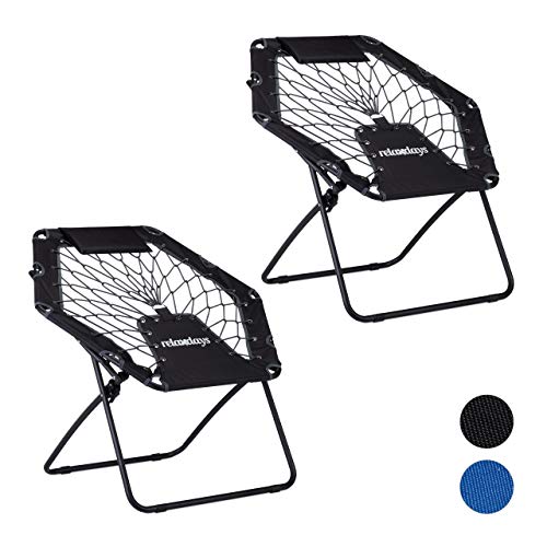 2x Sedia Bungee, Camping Chair Pieghevole, 70 x 84 x 75 cm, Poltrona Elastica Esterno, fino 100 Kg, Portaoggetti, Grigio