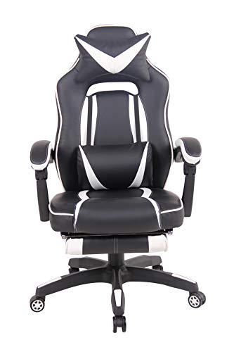 CLP Sedia Gaming Heat con Poggiapiedi in Similpelle I Poltrona Racing Scrivania con Schienale Reclinabile E Doppio Cuscino, Colore:Nero/Bianco
